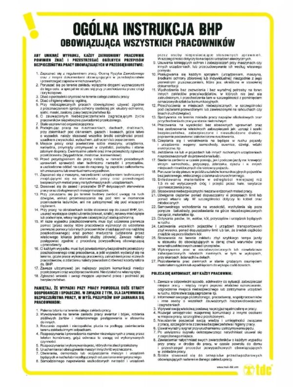 Instrukcja ogólna BHP 24,5 cm x 35 cm PCV