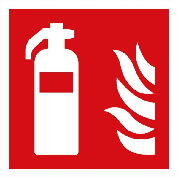 Znak przeciwpożarowy Gaśnica 10×10 cm Naklejka