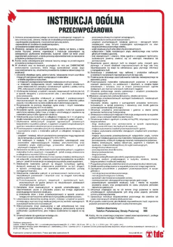Instrukcja ogólna przeciwpożarowa 24,5 cm x 35 cm PCV