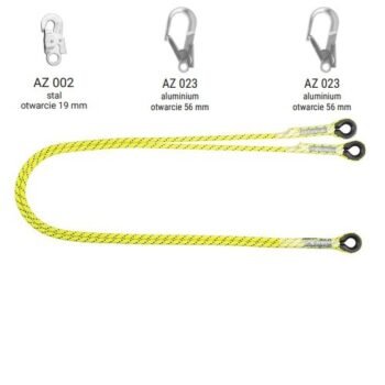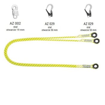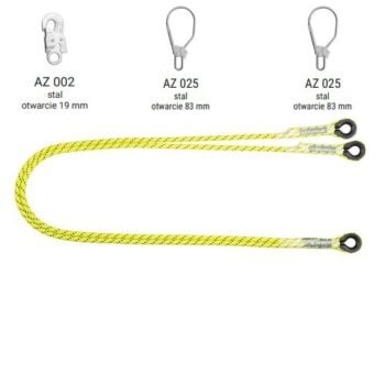 LB 102 HV – Podwójna linka bezpieczeństwa HV z zatrzaśnikami AZ002, AZ025, AZ025, kolor jaskrawy żółto-zielony wysokowidzialny – dł. 2 m