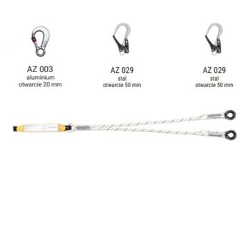 ABM SCF BW220 – Amortyzator bezpieczeństwa z podwójną linką do pracy na rusztowaniach z zatrzaśnikami AZ003, AZ029, AZ029 dł. 0.9 m