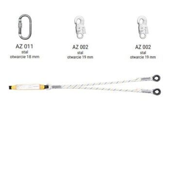 ABM SCF BW220 – Amortyzator bezpieczeństwa z podwójną linką do pracy na rusztowaniach z zatrzaśnikami AZ011, AZ002, AZ002 dł. 0.9 m