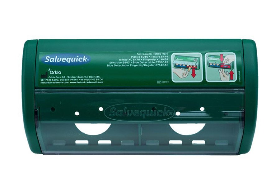• 1 szt. – Pusty automat do plastrów opatrunkowych Cederroth Salvequick REF 490710.