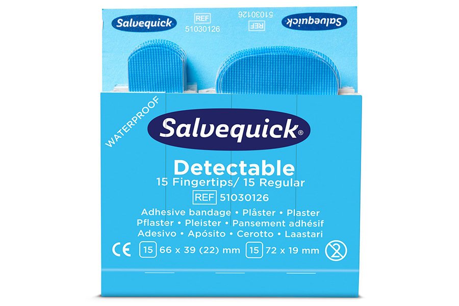 6 wkładów plastrów wykrywalnych na opuszki palców Salvequick Cederroth REF 51030126 + Automat do plastrów REF 490710 GRATIS !