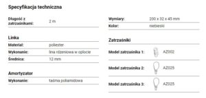 - Amortyzator: Wykonanie: taśma poliamidowa, Wymiary: 200 x 32 x 45 mm, Kolor: niebieski