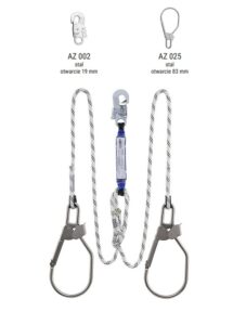 ABM/2LB100 – Amortyzator bezpieczeństwa z podwójną linką regulowaną i zatrzaśnikami AZ002, AZ025, AZ025