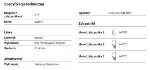 • Amortyzator: Wykonanie – taśma poliamidowa, Wymiary – 200 x 32 x 45 mm
