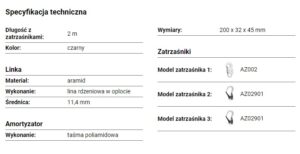 ABM/2LB200 FLR to amortyzator bezpieczeństwa z regulowaną linką odporny na działanie czynników gorących i zatrzaśnikami AZ002, AZ029, AZ029. Jest to produkt polskiej firmy Protekt .
