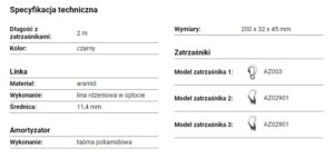 Produkt ABM/2LB200 FLR to amortyzator bezpieczeństwa z regulowaną linką odporny na działanie czynników gorących i zatrzaśnikami AZ003, AZ029, AZ029 firmy Protekt . Jest to produkt spełniający normy EN 355 .