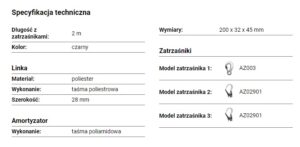 • Amortyzator: Wykonanie – taśma poliamidowa, Wymiary – 200 x 32 x 45 mm