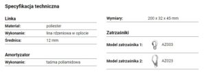 - Amortyzator: Wykonanie – taśma poliamidowa, Wymiary – 200 x 32 x 45 mm