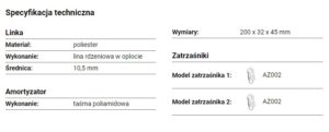 ABM/LB101 to amortyzator bezpieczeństwa z linką i zatrzaśnikami AZ002, AZ002, wyprodukowany przez polską firmę Protekt.