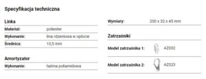 - Amortyzator wykonany z taśmy poliamidowej, wymiary 200x32x45 mm