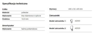 - Amortyzator wykonany z taśmy poliamidowej, wymiary 200x32x45 mm