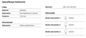 - Amortyzator: Wykonanie – taśma poliamidowa, Wymiary – 200 x 32 x 45 mm