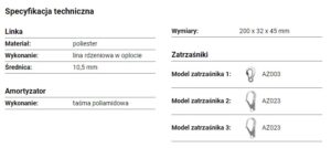 - Amortyzator wykonany z taśmy poliamidowej o wymiarach 200x32x45 mm