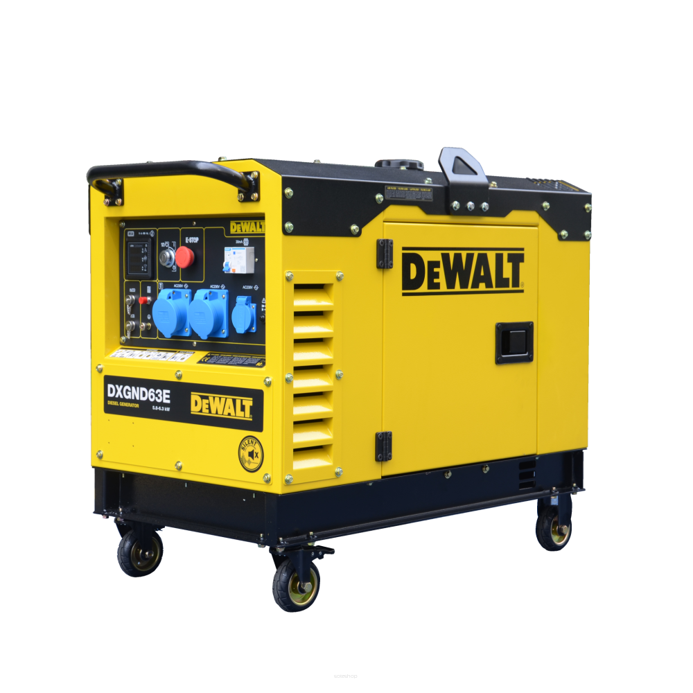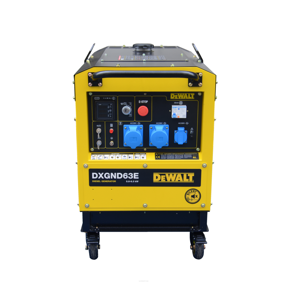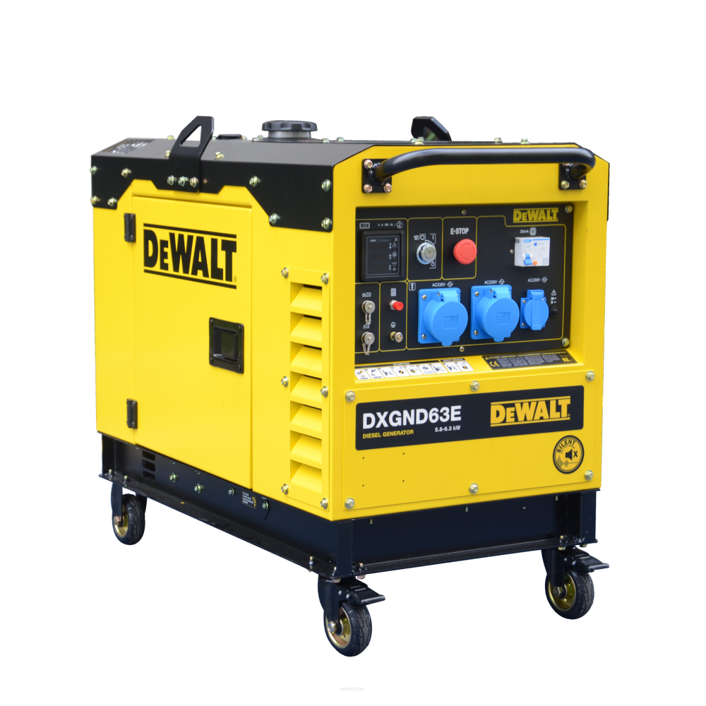 Agregat prądotwórczy DeWalt DXGND63E – diesel, wyciszony, 5,8 kW ciągłej / 6,3 kW maks., 230 V (AVR, ATS)