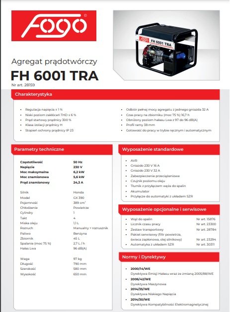 Agregat prądotwórczy FOGO – FH 6001 TRA