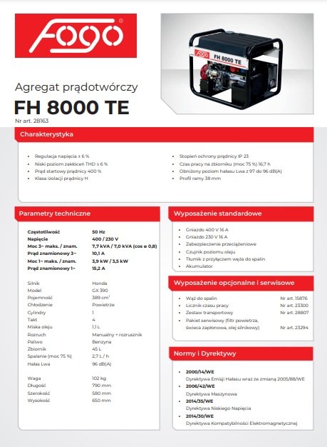 Agregat prądotwórczy FOGO – FH 8000 TE