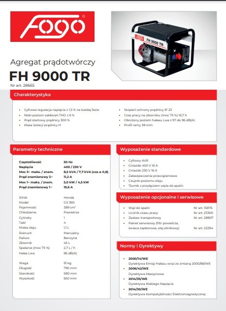 Agregat prądotwórczy FOGO – FH 9000 TR