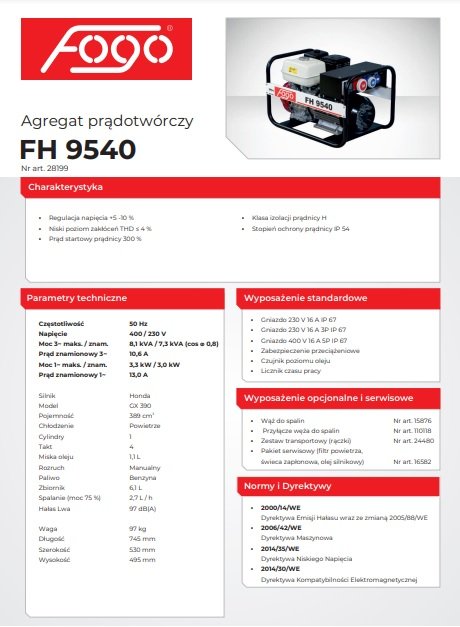 Agregat prądotwórczy FOGO – FH 9540