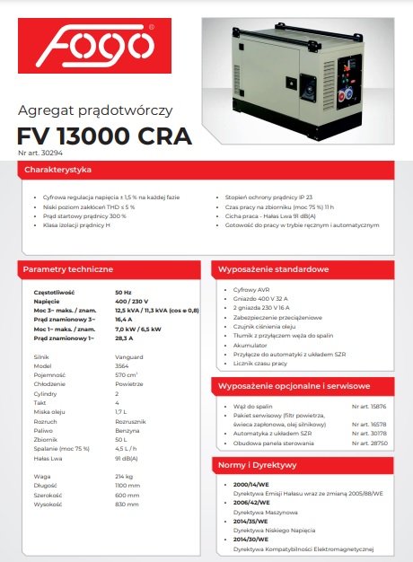Agregat prądotwórczy FOGO – FV 13000 CRA