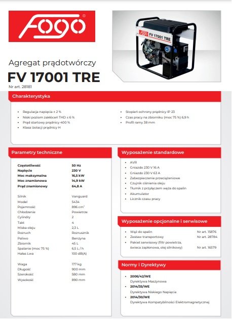 Agregat prądotwórczy FOGO – FV 17001 TRE