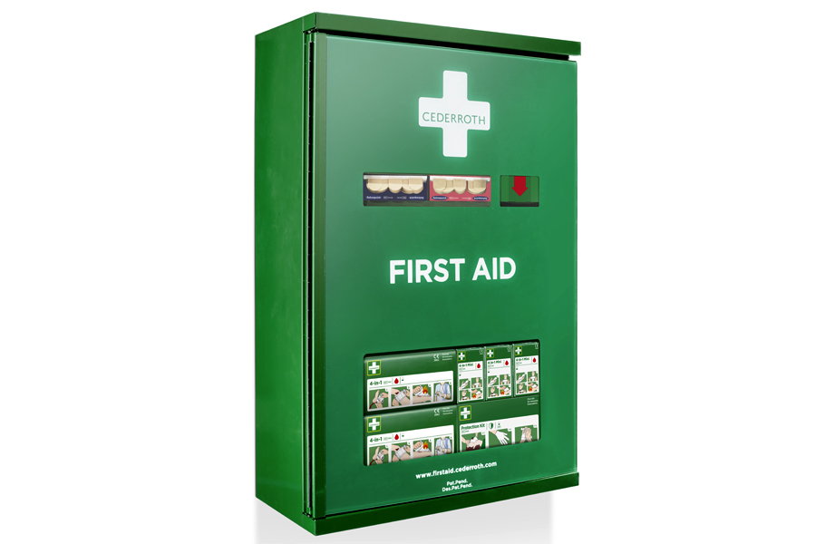 ✅Cederroth First Aid Cabinet REF 290900 to duża przemysłowa apteczka pierwszej pomocy w metalowej szafce.
