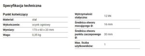 W tej kategorii znajdą Państwo nowoczesne systemy stałe zabezpieczające przed upadkiem z wysokości. Są to punkty zaczepowe, wśród których znajdują się belki zaczepowe, kotwy, wózki zaczepowe oraz uniwersalne punkty kotwiczenia. Wykonane są z najwyższej jakości materiałów oraz precyzyjnie dobranych komponentów, gwarantujących niezawodność, pewność użytkowania i najwyższe bezpieczeństwo. Zachęcamy Państwa do skorzystania z naszej oferty, w której zostały skompletowane wysokiej klasy urządzenia zaczepowe. Są one odpowiednio przystosowane do wysokich obciążeń, zabezpieczone przed korozją i dostępne w różnych formach oraz rozmiarach. Z pewnością wybiorą Państwo spośród naszych produktów dokładnie ten, którego szukacie. W naszej ofercie znajdą również Państwo profesjonalne zatrzaśniki nierozłączne.