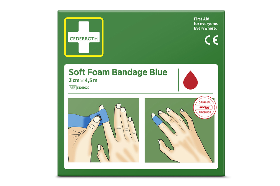 Niebieski bandaż piankowy Cederroth REF 51011022 to elastyczny, samoprzylepny, bezklejowy plaster opatrunkowy wykonany z pianki poliuretanowej bez lateksu. Produkt zapakowany w tekturowe pudełko i zabezpieczony papierem z obu stron. Opakowanie posiada funkcję dozownika. Bandaż ten przeznaczony jest głownie do opatrywania niewielkich ran, dobrze się trzyma bez względu na temperaturę, wilgotność czy kontakt z wodą. Sposób użycia: w prosty sposób należy oderwać pasujący kawałek i nawinąć jedną lub dwie warstwy wokół rany. Przy obfitym krwawieniu bandaż piankowy należy uformować w “poduszeczkę” dla uzyskania funkcji opatrunku uciskowego.