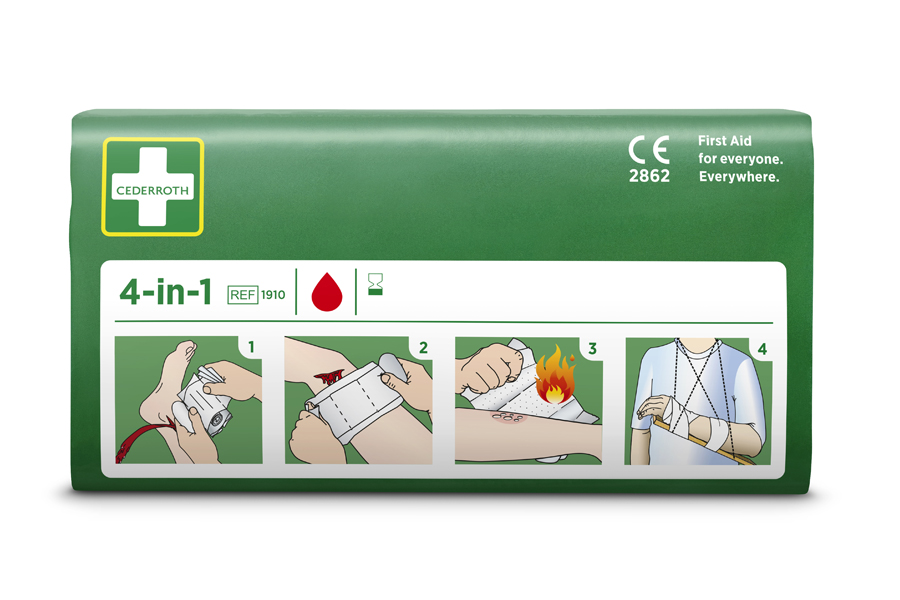 Duży zestaw do tamowana krwi Cederroth REF 1910 to wielofunkcyjny, sterylny opatrunek nadający się do opatrywania ran o różnej charakterystyce.