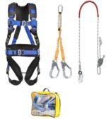 - amortyzator bezpieczeństwa ABM SCF o dł. 1,5 m z podwójną linką i zatrzaśnikami AZ 011 i 2 x AZ 023 urządzenie do ustalania pozycji przy pracy PROT 22 o dł. 2 m z zatrzaśnikami stalowymi AZ 002 i AZ 011