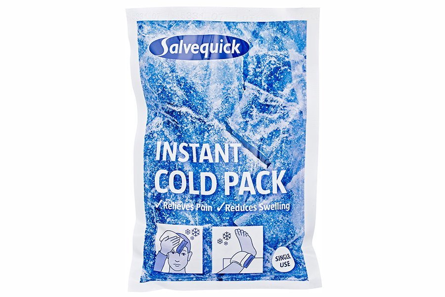 Okład chłodzący Cederroth Salvequick Instant Cold Pack REF 219600  działa jak zimny kompres umożliwiając szybkie miejscowe schłodzenie ciała, co przynosi ulgę w bólu i zmniejsza obrzęk. Zalecany przy zwichnięciach oraz drobnych urazach. Szybkie schłodzenie miejsca gdzie powstał uraz może znacząco skrócić czas rehabilitacji i powrotu do zdrowia. Zestaw chłodzący jest aktywuje się poprzez zwinięcie woreczka, co powoduje rozerwanie wewnętrznej torebki z wodą i natychmiastowe powstanie efektu chłodzenia. Produkt jednorazowego użytku.