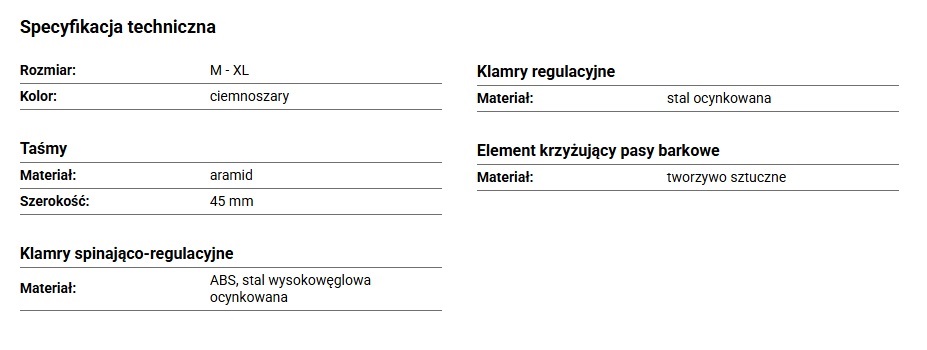 - Materiał taśm – Aramid, szerokość 45 mm — materiał trudnopalny