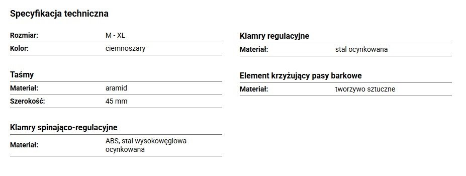 - Element krzyżujący pasy barkowe – Tworzywo sztuczne