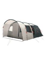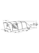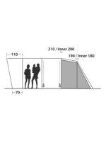 Ten model ma dwie oddzielone od siebie sypialnie, które możesz ze sobą połączyć. Sypialnie wykonano z oddychającego poliestru. Dzięki temu, że zastosowano tutaj przyciemniany materiał, możesz liczyć na komfortowy sen po wschodzie słońca. Podłogę w sypialni wyprodukowano z wytrzymałego polietylenu. Model ma również wszytą podłogę w przedsionku, co ograniczy przedostawanie się do środka owadów. Ten produkt ma obszerny przedsionek z frontowymi drzwiami wykonanymi z siateczki. Kolejne drzwi umieszczono na bocznej ścianie. Z przodu znajduje się zadaszenie zapewniające dodatkową przestrzeń. Po bokach wejścia do tego schronienia znajdują się zasłaniane otwory wentylacyjne, model ma również boczne okna z zasłonami. Praktycznym dodatkiem jest otwór wentylacyjny z tyłu modelu. Wewnątrz sypialni znajdziesz kieszenie na drobiazgi, kolejne umieszczono w przedsionku, poza tym, model ma również możliwość zawieszenia lampki, czy też przełożenia przewodów elektrycznych przez specjalny otwór przy podłodze. W zestawie z tym produktem otrzymujesz pokrowiec transportowy.