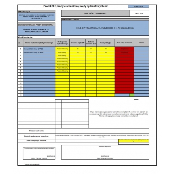 Protokół z próby ciśnieniowej węży hydrantowych.Program xls.