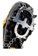 Nowością w tym modelu jest zastosowanie nierdzewnej stali. Wykonano z niej zarówno zęby, jak i mocujące całość łańcuchy. Dzięki temu całość cieszy się jeszcze większą wytrzymałością na korozję, co przekłada się na długie użytkowanie i niezawodność. Za odpowiedni ułożenie raczków na butach odpowiadaj elastyczny element oraz zapinany w górnej części rzep. Dzięki temu rozwiązaniu raczki są bardzo łatwe w obsłudze.
