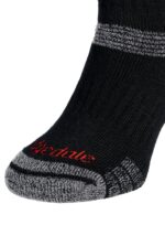 - Skarpety charakteryzują się wysoką wytrzymałością dzięki dodatkowi poliamidowych włókien w warstwie zewnętrznej – narażonej na tarcie buta;