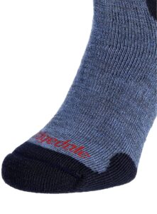 Bridgedale Explorer Heavy Merino C to ciepłe skarpety, które spełnią oczekiwania miłośniczek trekkingów. Zostały wykonane z materiałowego połączenia wełny merino i włókien Coolmax®, dzięki technologii MerinoFusion®. Gwarantuje to użytkowniczkom maksimum korzyści w czasie aktywności w terenie, zapewniając odpowiedni stosunek izolacji termicznej, względem oddychalności. Materiał sprawnie radzi sobie z nadmiarem wilgoci, utrzymując komfortowy klimat przy stopach.