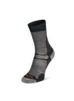 Skarpety w góry Bridgedale Hike z serii Ultra Light Merino Performance to najcieńsza opcja – nie pozbawiona amortyzacji! Ultracienka przędza sprawia, że stopa nie przegrzewa się i jest bardzo dobrze wentylowana. Nie chodzi tu jednak tylko o odpowiednio dobrany surowiec, lecz również o umiejętne jego rozłożenie na całej powierzchni skarpet. W miejscach gdzie na stopę działa największy ucisk, tarcie i uderzenia wciąż znajdziesz tu znacznie gęstszy i puszysty splot. Podwójne “pętelki w pętelkach” czyli T2 Anti-Shock Cushioning zapewniają puszystkość tam gdzie tego potrzeba i amortyzację każdego stawianego kroku. Rezultatem są cienkie skarpety w góry na lato, oferujące doskonały komfort wędrówki. Z jednej strony (dosłownie i w przenośni) mamy więc super cienką skarpetę termoaktywną, o strukturze siateczki rozciągniętej wokół całego śródstopia i na obwodzie górnego mankietu, z drugiej zaś, dobrze amortyzowane punkty na podeszwie – na pięcie i tuż pod palcami. Ponadto, płaskie łączenie przy palcach nie powoduje ucisku czy nieprzyjemnego ocierania, a miękki podwójny i bezuciskowy ściągacz utrzymuje skarpetę na miejscu w czasie wielogodzinnego marszu, zapobiegając zwijaniu i ocieraniu.