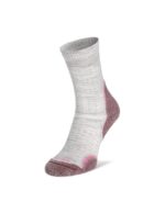 Skarpety w góry Bridgedale Hike z serii Ultra Light Merino Performance to najcieńsza opcja – nie pozbawiona amortyzacji! Ultracienka przędza sprawia, że stopa nie przegrzewa się i jest bardzo dobrze wentylowana. Nie chodzi tu jednak tylko o odpowiednio dobrany surowiec, lecz również o umiejętne jego rozłożenie na całej powierzchni skarpet. W miejscach gdzie na stopę działa największy ucisk, tarcie i uderzenia wciąż znajdziesz tu znacznie gęstszy i puszysty splot. Podwójne “pętelki w pętelkach” czyli T2 Anti-Shock Cushioning zapewniają puszystkość tam gdzie tego potrzeba i amortyzację każdego stawianego kroku. Rezultatem są cienkie skarpety w góry na lato, oferujące doskonały komfort wędrówki. Z jednej strony (dosłownie i w przenośni) mamy więc super cienką skarpetę termoaktywną, o strukturze siateczki rozciągniętej wokół całego śródstopia i na obwodzie górnego mankietu, z drugiej zaś, dobrze amortyzowane punkty na podeszwie – na pięcie i tuż pod palcami. Ponadto, płaskie łączenie przy palcach nie powoduje ucisku czy nieprzyjemnego ocierania, a miękki podwójny i bezuciskowy ściągacz utrzymuje skarpetę na miejscu w czasie wielogodzinnego marszu, zapobiegając zwijaniu i ocieraniu.