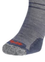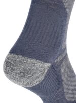 Skarpety w góry Bridgedale Hike z serii Ultra Light Merino Performance to najcieńsza opcja – nie pozbawiona amortyzacji! Ultracienka przędza sprawia, że stopa nie przegrzewa się i jest bardzo dobrze wentylowana. Nie chodzi tu jednak tylko o odpowiednio dobrany surowiec, lecz również o umiejętne jego rozłożenie na całej powierzchni skarpet. W miejscach gdzie na stopę działa największy ucisk, tarcie i uderzenia wciąż znajdziesz tu znacznie gęstszy i puszysty splot. Podwójne “pętelki w pętelkach” czyli T2 Anti-Shock Cushioning zapewniają puszystkość tam gdzie tego potrzeba i amortyzację każdego stawianego kroku. Rezultatem są cienkie skarpety w góry na lato, oferujące doskonały komfort wędrówki. Z jednej strony (dosłownie i w przenośni) mamy więc super cienką skarpetę termoaktywną, o strukturze siateczki rozciągniętej wokół całego śródstopia i na obwodzie górnego mankietu, z drugiej zaś, dobrze amortyzowane punkty na podeszwie – na pięcie i tuż pod palcami. Ponadto, płaskie łączenie przy palcach nie powoduje ucisku czy nieprzyjemnego ocierania, a miękki podwójny i bezuciskowy ściągacz utrzymuje skarpetę na miejscu w czasie wielogodzinnego marszu, zapobiegając zwijaniu i ocieraniu.