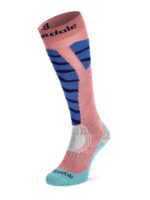 Skarpety damskie Bridgedale Ski Easy On Merino E Pattern nadają się zarówno do aktywności narciarskich jak i tych związanych ze skitourem. Zostały tak skonstruowane, aby zapewnić izolację od chłodu oraz odpowiednią wytrzymałość. Idealnie dopasowują się do kobiecego profilu stopy, zapewniając wygodę podczas intensywniejszego wysiłku. Skarpety posiadają charakterystyczną budowę, opartą na panelach o różnej grubości i właściwościach. Na palcach dodano więc grubszy, doskonale izolujący materiał, aby najmocniej narażona na marznięcie część stopy była jak najlepiej chroniona. W części skarpet zastosowany został także materiał charakteryzujący się znacznie zmniejszonym tarciem, dzięki czemu zakładanie butów narciarskich nigdy nie było tak proste jak teraz. U góry produkt wykończony został elastycznym pasem, który nie ogranicza przepływu krwi, ale zapobiega niepożądanemu podwijaniu się skarpet.