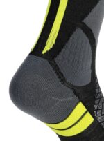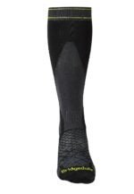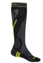 Skarpety skiturowe Bridgedale Ski Lightweight Merino P – black/lime – to wyjątkowo udany wybór, kiedy liczy się nie tylko wygoda wokół stóp, ale także zapewnienie odpowiedniego transportu wilgoci. Dzięki umieszczeniu stref cechujących się ponadprzeciętną wentylacją po bokach i na podbiciu, można być pewnym, że stopa pozostanie komfortowo sucha. Cienka konstrukcja modelu zapewnia natomiast maksymalne wyczucie nart, które jest kluczowym elementem podczas wypadu skiturowego.