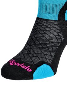 Skarpety narciarskie Bridgedale Ski Lightweight Merino P – black/blue – to lekki model oferujący świetną wentylację, który idealnie nada się na wyjazdy narciarskie w wiosennych temperaturach, a także te skitourowe, gdzie intensywność wysiłku jest znaczenie zwiększona. Ich doskonałe właściwości odprowadzające wilgoć sprawiają, że stopy pozostają przyjemnie suche, nawet pomimo wzmożonej potliwości – czy to na skutek słonecznej pogody czy też ciężkiego podejścia na którym pocisz się ponad miarę.