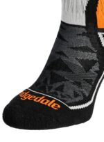 Skarpety narciarskie Bridgedale Ski Midweight Merino P – black/ silver- to średniej grubości model amortyzowany na całej podeszwie stopy, a także wzdłuż kości piszczelowych. To pośredni wybór między super ciepłymi skarpetami o jednolitej grubości (oznaczone + w nazwie), a najcieńszymi modelami na nieco wyższe temperatury i do wydolnościowych aktywności (np. na skiturach).