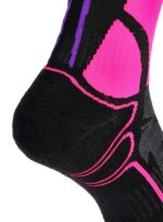 Damskie skarpety narciarskie Bridgedale Ski Midweight Merino P – fluo pink – to techniczny model o sowitej, ale strefowej amortyzacji który świetnie wpasuje się w dopasowane buty narciarskie. To optymalny wybór jeśli poszukujesz ciepła, ale w wydaniu niezbyt obszernym, nie wymagającym większego rozmiaru obuwia. Dobre właściwości termiczne, świetne przyleganie do stopy i skuteczna transpiracja wilgoci dla komfortu przez cały dzień.