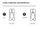 Szelki są certyfikowane i zgodne z normą EN 361 jako szelki bezpieczeństwa przeznaczone do stosowania w systemac