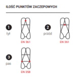- EN 361 jako szelki bezpieczeństwa przeznaczone do stosowania w systemach